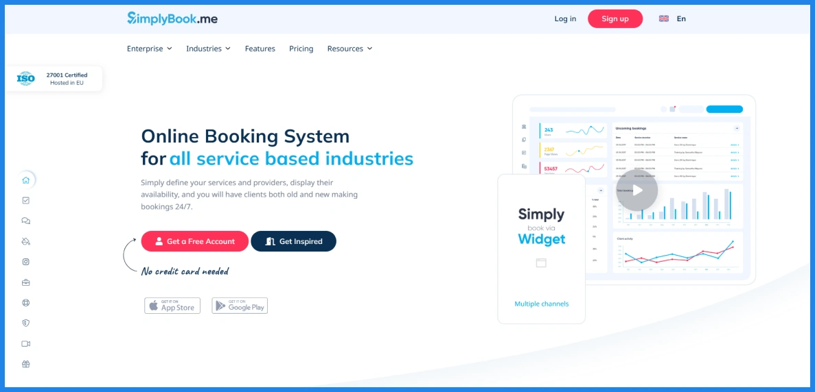 SimplyBook.me is a feature-rich online booking software for small to mid-sized businesses across different industries. It supports a wide range of services like beauty salons, fitness centers, medical practices, and educational providers.