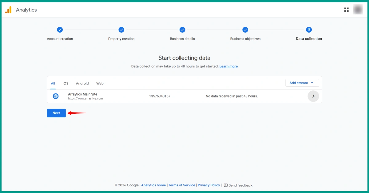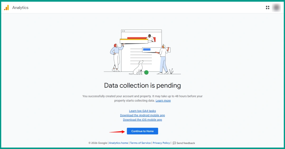 Now Google will start collecting your data. Click Next and then Continue to move on.